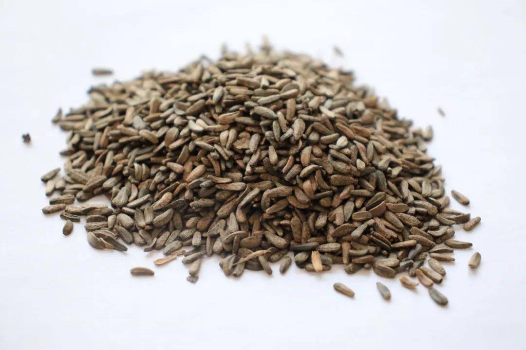 瘦果呈长扁卵形,长约6毫米,中部直径约3毫米。外皮灰褐色,有数条微突起的纵纹,中间一条较明显,全体有稀疏的斑点,又似致密的网纹.一端略窄,微弯曲,顶上有一浅色小点;另一端钝圆,稍宽,有一小凹窝。纵面稍隆起,边缘光圆而厚。外皮较坚硬,破开后种仁两瓣,灰白色,富有油性。无臭,味微苦。以粒大、饱满、外皮灰褐色者佳。